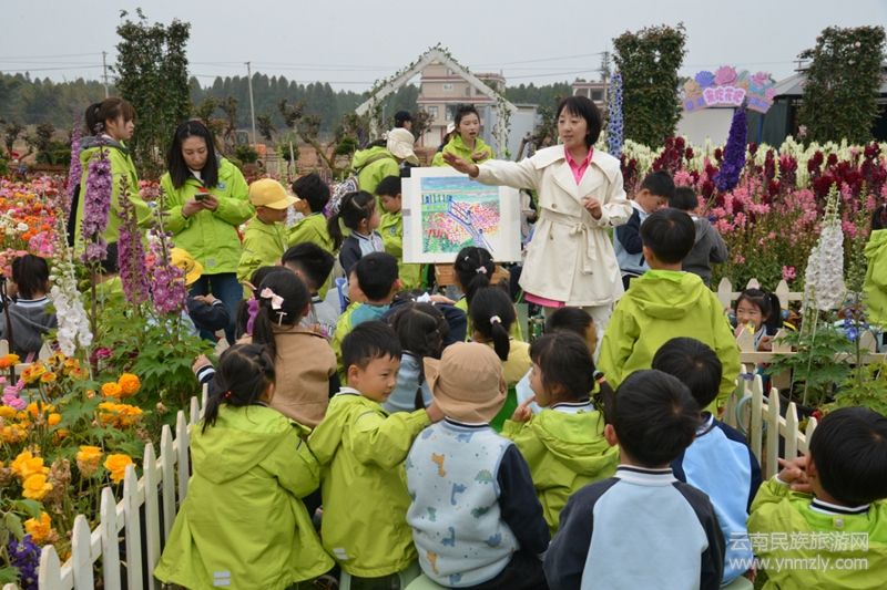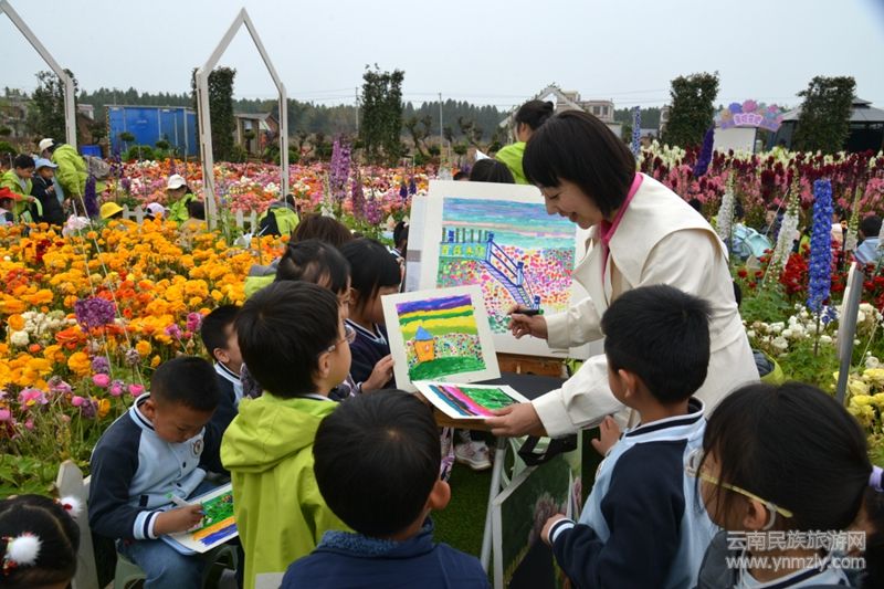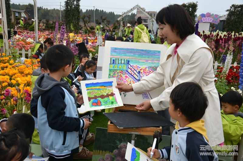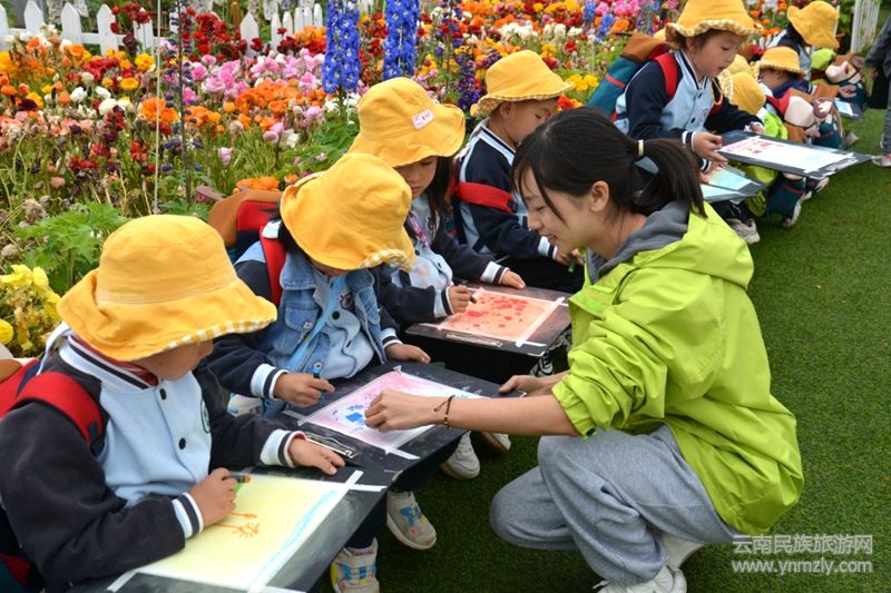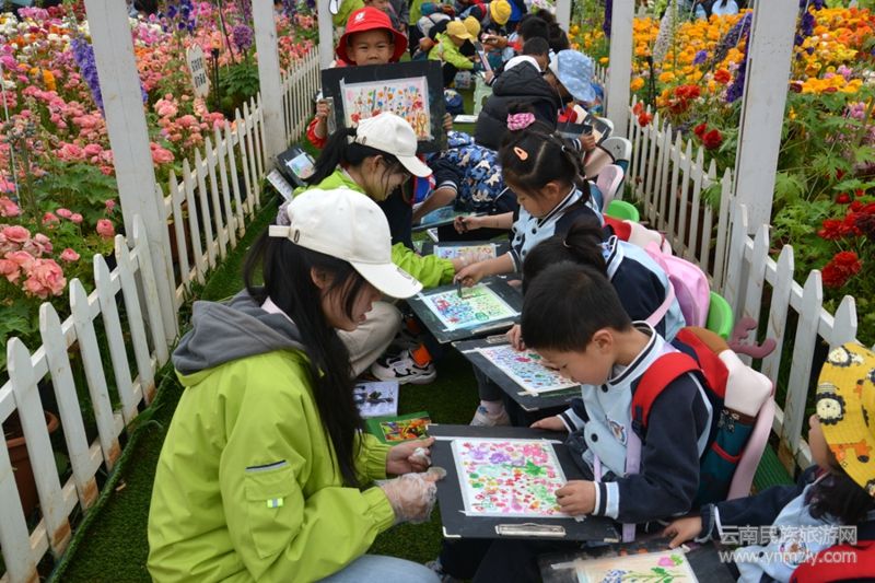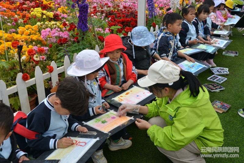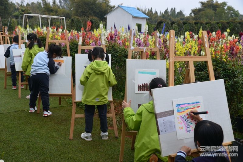 現(xiàn)場繁花似錦、金魚草、洋牡丹、玫瑰等云南特色花卉打造出夢幻場景,孩子們在芬芳中開啟創(chuàng)作之旅,描繪心中美好。