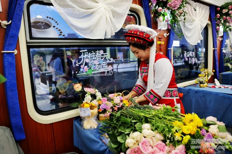 “賞花之旅•一路花香”主題列車是中國(guó)鐵路昆明局集團(tuán)有限公司(以下簡(jiǎn)稱“國(guó)鐵昆明局”)與云南文旅部門聯(lián)合打造的特色列車,目前開行的Z162/1次花卉主題列車、往返昆明至北京間,途徑貴陽(yáng)、長(zhǎng)沙、鄭州等10余個(gè)車站,列車上每天都有鮮花展示,一年四季花卉不斷,進(jìn)一步展示云南豐富的花卉資源、獨(dú)特的民族文化以及豐富的旅游資源,讓旅客的旅行生活像花兒一樣美。
