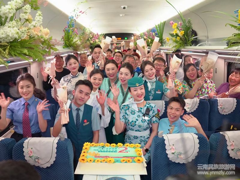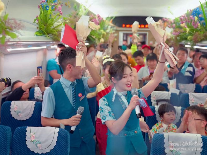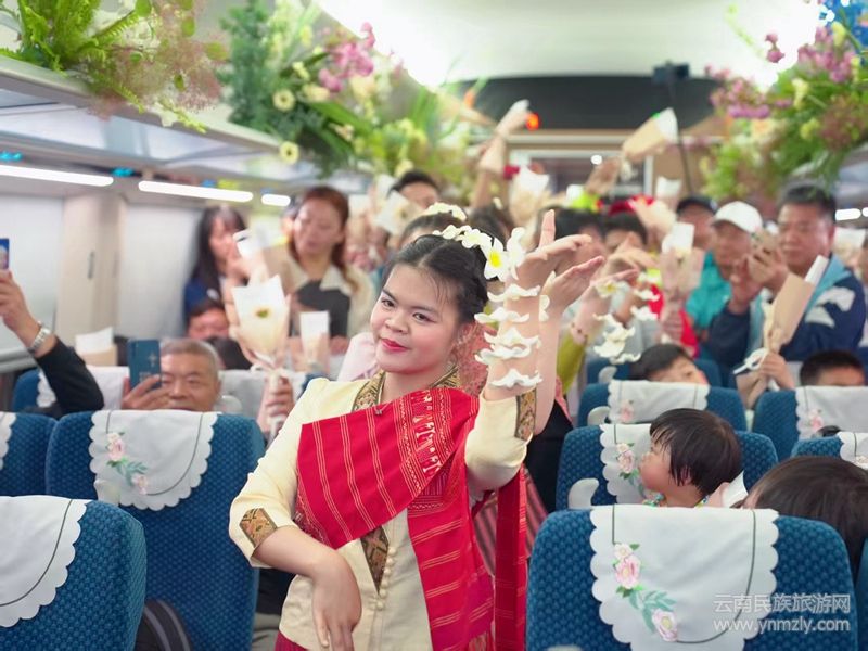 踏上這列充滿文化氣息的列車,仿佛置身于一場(chǎng)視覺(jué)與心靈的盛宴。國(guó)鐵昆明局巧妙運(yùn)用櫻花、紫羅蘭、玫瑰花等花卉與民族文化元素,將車廂裝點(diǎn)得美輪美奐,通過(guò)列車這一“流動(dòng)花海”,讓旅客在旅途中就能領(lǐng)略到云南獨(dú)特的花韻,享受“一路花香”的愜意體驗(yàn)。