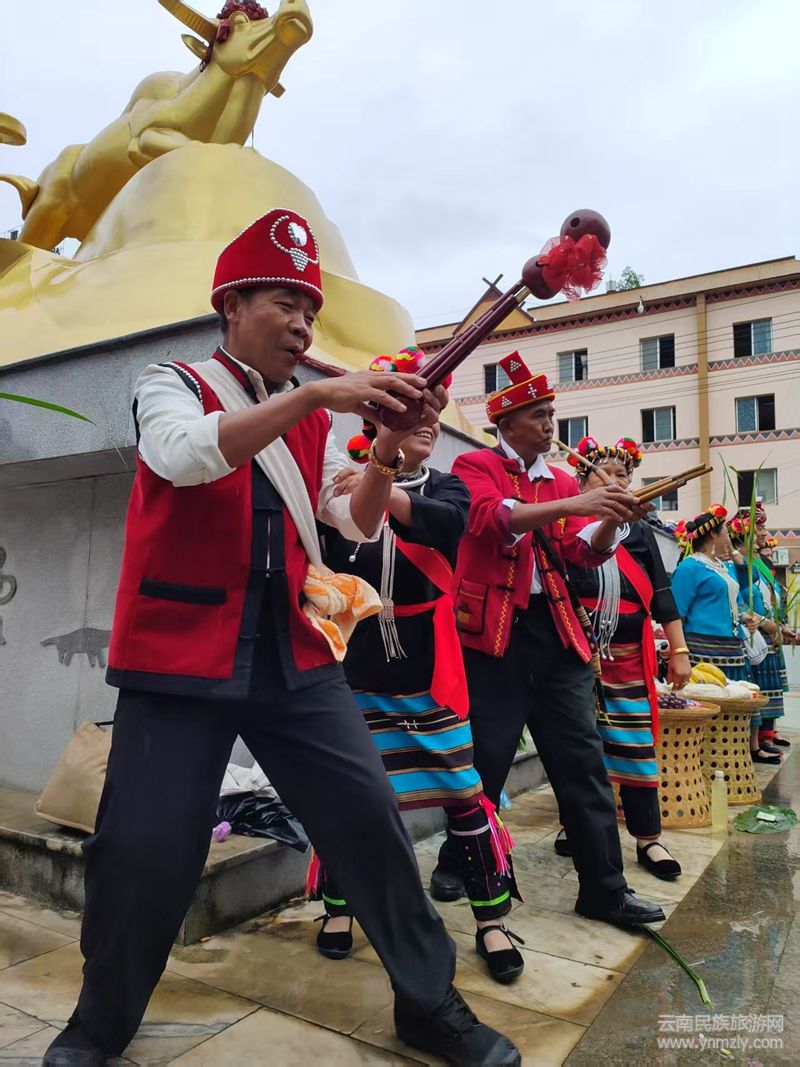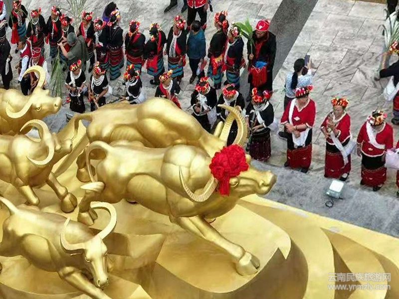 水牛是佤族人民最崇拜的,每年的春耕時(shí)節(jié),各村寨的佤族群眾,在長老和族人的代替領(lǐng)下,去山里或者具有紀(jì)念意義的雕塑廣場上,進(jìn)行一些祈求祝福平安等祭祀活動(dòng),在歡快的蘆笙中跳著佤族的打歌舞蹈。