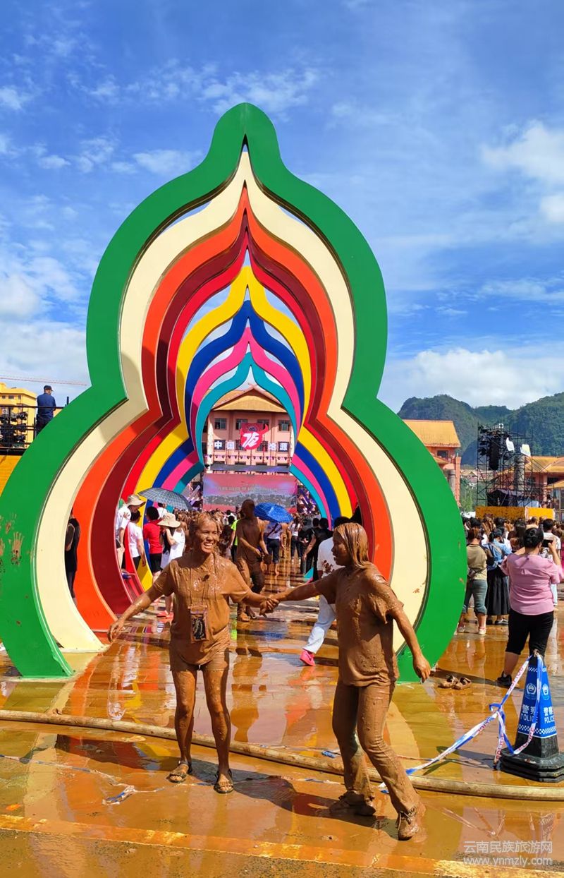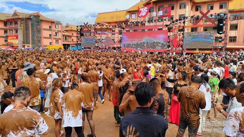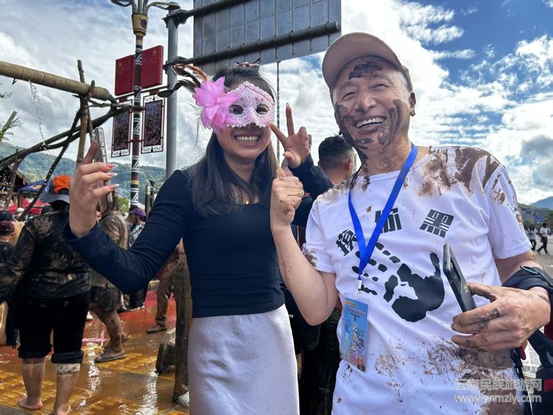 人們的狂歡方式也不盡相同,有拿起涂料穿梭在人群,隨機(jī)涂抹送祝福的;有人則是重點(diǎn)涂抹相對(duì)“干凈”的衣服;還有玩得忘乎所以的人更是直接在泥漿里打滾;還有的干脆什么也不干就盡情享受泥漿的祝福。“一起來(lái)”“向左”“向左”……舞臺(tái)上的DJ播放著動(dòng)感十足的音樂(lè),人群隨著律動(dòng)舞動(dòng)起來(lái)。泥點(diǎn)飛濺間,身份、年齡、民族的界限被徹底打破,泥漿磨平了浮躁和煩惱,只剩快樂(lè)在整個(gè)廣場(chǎng)上空飄揚(yáng)。“摸你黑”,意為“這是我們所期待的,堅(jiān)持下去吧,堅(jiān)持到永久”。這一歷史悠久的傳統(tǒng)節(jié)日,不僅是佤族人民祈求健康、驅(qū)邪納福的儀式,更已經(jīng)成為中華文化多元一體的璀璨明珠。如今,這場(chǎng)古老的祈福儀式已經(jīng)演變?yōu)槭澜绻蚕淼目鞓?lè)密碼……