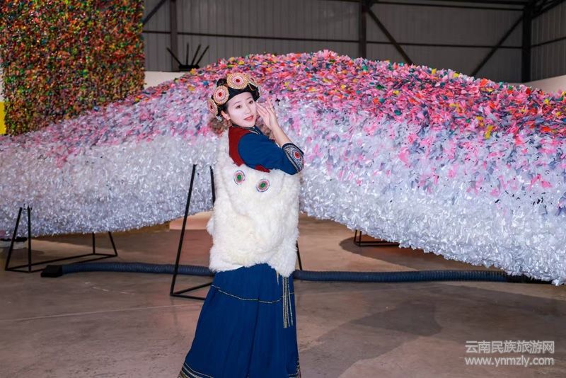 學術支持代表、著名學者夏可君教授隨后發(fā)言。他提到,古原的綜合藝術具有極其重要的文旅價值。古原將地方性與民族性的文化歷史記憶、超越維度的莊嚴儀式、節(jié)日的熱烈氣氛、當代藝術的個人想象力,以及AI技術的算法,以一種前所未有的創(chuàng)造性方式綜合在一起,充分體現(xiàn)了中國藝術的創(chuàng)造性原理。特別是在展覽現(xiàn)場,當我們目睹龍與蛇的巨型作品時,這些蘊含中國文化吉祥符號的花彩作品,其色彩的絢爛與濃烈,深深地震撼了到場的觀眾,必將成為麗江一道新的瑰麗景觀。