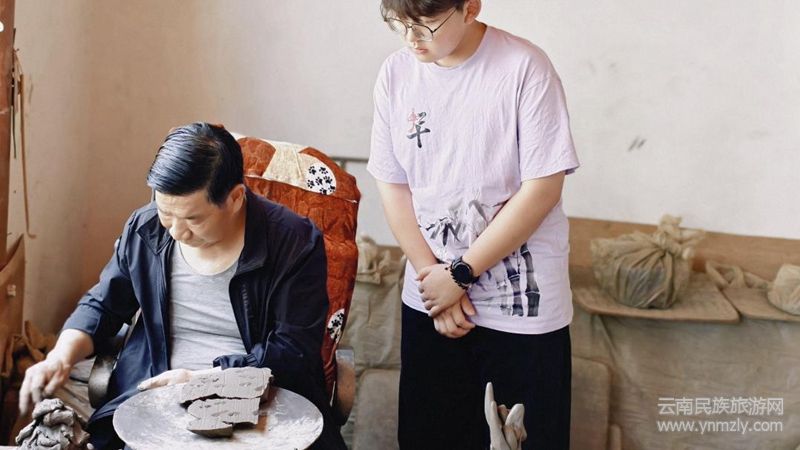 研學(xué)首站,支教團(tuán)走進(jìn)鶴慶瓦貓非遺傳承基地。院落內(nèi),姿態(tài)各異的青灰色瓦貓坯子靜默佇立,凝聚匠人巧思。傳承人郜師傅詳解瓦貓作為屋頂“守護(hù)神”驅(qū)邪納福的文化寓意與造型講究。成員們親手觸摸瓦貓的溫度,聆聽其承載古今百姓對美好生活殷切期望的故事,深刻體悟到這項(xiàng)技藝所蘊(yùn)含的深厚民俗信仰與文化守護(hù)價(jià)值,在靜默陶韻中守護(hù)祈愿之心。