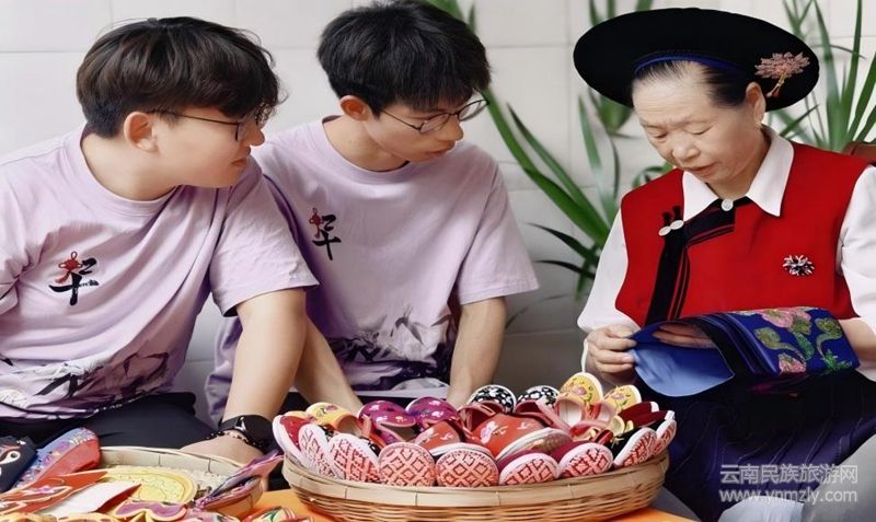 研學(xué)第二站,團(tuán)隊(duì)步入白族刺繡工坊。年逾古稀的繡娘楊奶奶展示“盤金繡”絕技,講解一件披肩需耗時(shí)三月的精工細(xì)作。在楊奶奶指導(dǎo)下,成員們嘗試刺繡,雖針腳稚嫩,但最終初現(xiàn)的幾何紋樣令人興奮。指尖穿梭的絲線傳遞著溫度,成員們親歷千針萬線的往復(fù),親身體驗(yàn)了“慢工出細(xì)活”的堅(jiān)守,領(lǐng)悟到非遺傳承的真諦在于一針一線的堅(jiān)持與代代薪火相傳的恒心。