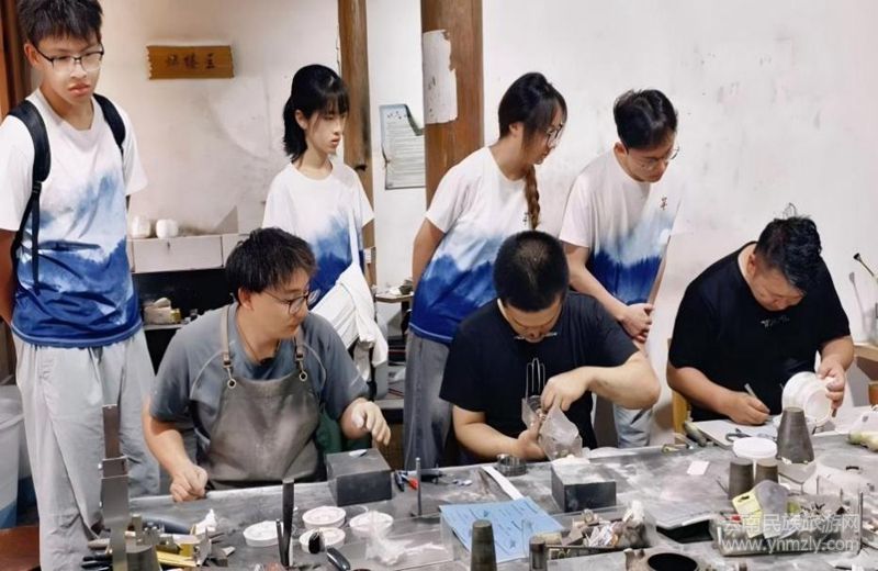本網(wǎng)訊(通訊員:安永康 李宗成 闞欣雨 李嬌雪)為投身鄉(xiāng)村教育與鄉(xiāng)村振興厚植文化自信與鄉(xiāng)土情懷,2025年7月,淮陰工學(xué)院“來自遠(yuǎn)山深處的力量”第十二季云南支教團(tuán)深入云南大理鶴慶縣,開展了一場主題為“觸摸文化根脈,傳承匠心精神”的白族非遺“面對面”研學(xué)活動(dòng)。青年學(xué)子先后探訪了瓦貓非遺傳承基地、白族刺繡工坊、新華村銀器博物館、手工棉紙作坊,在稻田埂上聆聽“田埂調(diào)”,走進(jìn)染香院體驗(yàn)白族扎染技藝,通過親手觸摸、親耳聆聽、親手制作的沉浸式體驗(yàn),青年學(xué)子們深刻感悟當(dāng)?shù)胤俏镔|(zhì)文化遺產(chǎn)的獨(dú)特魅力、深厚底蘊(yùn)與鮮活生命力,增強(qiáng)文化自信。