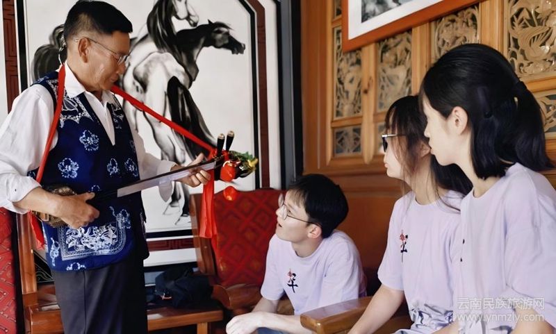 暮色時(shí)分,團(tuán)隊(duì)駐足稻田埂。傳承人李爺爺懷抱三弦,用白族方言唱起原生態(tài)“田埂調(diào)”。歌聲隨稻浪起伏,吟詠農(nóng)耕日常,質(zhì)樸動(dòng)人。“這歌是田埂上‘長’出來的。”成員們雖不解方言,卻在旋律中感受到與喧囂都市截然不同的“自然頻率”,輕聲應(yīng)和。夕陽下,那未經(jīng)雕琢的歌聲讓成員們讀懂農(nóng)人對土地的深情眷戀與生活的質(zhì)樸熱愛,體味到熱愛生活的質(zhì)樸本心。