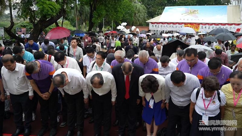 中國(guó)駐馬大使館武官劉超威、中華英烈褒揚(yáng)事業(yè)促進(jìn)會(huì)副會(huì)長(zhǎng)張學(xué)軍、中國(guó)退役軍人事務(wù)部宣傳中心副主任倪光輝、上海市龍華烈士陵園主任鄒強(qiáng)、董總主席拿督陳友信、吉隆坡廣東義山主席楊博耀、副主席李振光、名譽(yù)主席拿督李新才、鄭金德、黃福威與梁國(guó)財(cái)、總務(wù)鍾華烈及財(cái)政符樹波。云南省南洋華僑機(jī)工回國(guó)抗戰(zhàn)歷史研究會(huì)名譽(yù)會(huì)長(zhǎng)林建友、徐永泰、徐宏基,副會(huì)長(zhǎng)陳良維、陳月萍、周科良,監(jiān)事長(zhǎng)李婭,秘書長(zhǎng)王耀,黨支部書記黃金玲,理事張登宏等研究會(huì)成員;南僑機(jī)工后裔、吉隆坡廣東義山和馬主要華團(tuán)代表、各界友人,代表共一千多人出席活動(dòng),共同緬懷在中國(guó)抗戰(zhàn)中犧牲的南僑機(jī)工和反法西斯戰(zhàn)爭(zhēng)中的不幸死難者,并向和平公園紀(jì)念總碑、南僑機(jī)工紀(jì)念碑、死難者紀(jì)念碑等敬獻(xiàn)鮮花。