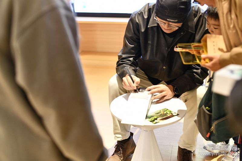 分享會(huì)結(jié)束后,湯海濤留在現(xiàn)場(chǎng),為讀者簽名、合影。隊(duì)伍中,有年輕的藝術(shù)學(xué)生,有帶孩子前來(lái)感受藝術(shù)氛圍的家長(zhǎng),也有專(zhuān)程從外地趕來(lái)的投稿人。有人請(qǐng)他寫(xiě)下寄語(yǔ),有人靜靜站在一旁,翻閱日歷中屬于自己或陌生人的那一頁(yè)。