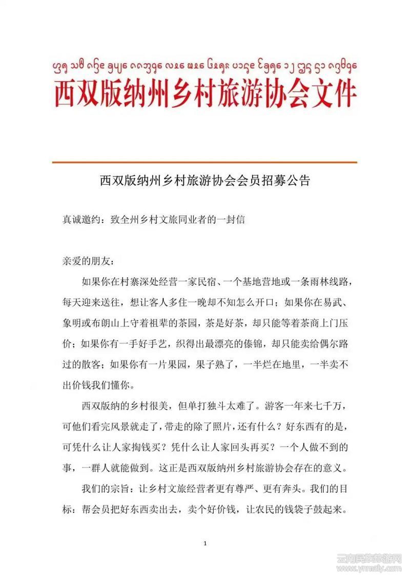 『公告公示』西雙版納州鄉(xiāng)村旅游協(xié)會會員招募公告